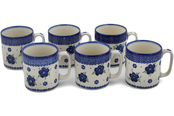 This Bleu-Belle Fleur Set of 6 Mugs was handmade and hand decorated in Boleslawiec, Poland by skilled artisans according to old traditional methods. This Polish stoneware is microwave, dishwasher, freezer, and oven safe up to 480°F. It does not contain lead or cadmium. It is part of the Bleu-Belle Fleur Collection.