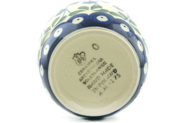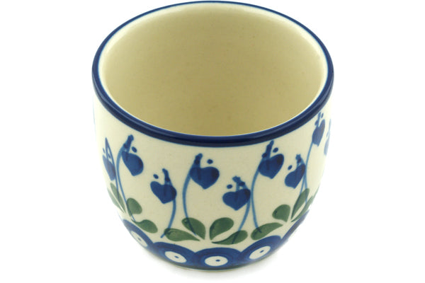 This Bleeding Heart Peacock 6 oz Tumbler was handmade and hand decorated in Boleslawiec, Poland by skilled artisans according to old traditional methods. This Polish stoneware is microwave, dishwasher, freezer, and oven safe up to 480°F. It does not contain lead or cadmium. It is part of the Bleeding Heart Peacock Collection.