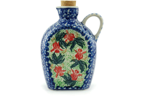 This Red Hibiscus 19 oz Bottle was handmade and hand decorated in Boleslawiec, Poland by skilled artisans according to old traditional methods. This Polish stoneware is microwave, dishwasher, freezer, and oven safe up to 480°F. It does not contain lead or cadmium. It is part of the Red Hibiscus Collection.