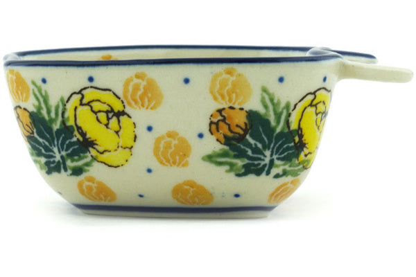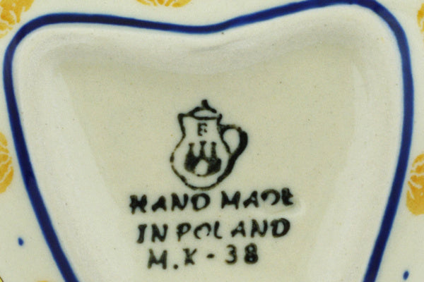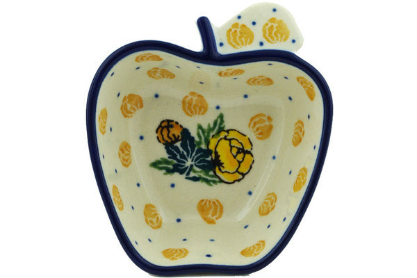 This Yellow Rose Of Texas 4" Apple Shaped Bowl was handmade and hand decorated in Boleslawiec, Poland by skilled artisans according to old traditional methods. This Polish stoneware is microwave, dishwasher, freezer, and oven safe up to 480°F. It does not contain lead or cadmium. It is part of the Yellow Rose Of Texas Collection.