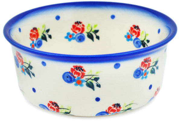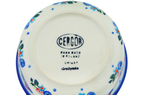 This Dancing Flowers 5" Bowl was handmade and hand decorated in Boleslawiec, Poland by skilled artisans according to old traditional methods. This is a Polish pottery Signature Unikat, which means that it has been hand painted with both sponges and brushes and it is signed by the artist who painted it. Unikat pieces are the most intricate works of art. Larger Unikat items take hours of very careful work to finish. This Polish stoneware is microwave, dishwasher, freezer, and oven safe up to 480°F. It does not contain lead or cadmium. It is part of the Dancing Flowers Collection.