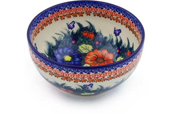 This Butterfly Splendor 7" Bowl was handmade and hand decorated in Boleslawiec, Poland by skilled artisans according to old traditional methods. This is a Polish pottery Signature Unikat, which means that it has been hand painted with both sponges and brushes and it is signed by the artist who painted it. Unikat pieces are the most intricate works of art. Larger Unikat items take hours of very careful work to finish. This Polish stoneware is microwave, dishwasher, freezer, and oven safe up to 480°F. It does not contain lead or cadmium. It is part of the Butterfly Splendor Collection.