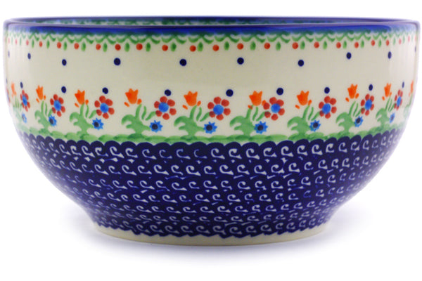 This Spring Flowers 9" Mixing bowl, serving bowl was handmade and hand decorated in Boleslawiec, Poland by skilled artisans according to old traditional methods. This Polish stoneware is microwave, dishwasher, freezer, and oven safe up to 480°F. It does not contain lead or cadmium. It is part of the Spring Flowers Collection.