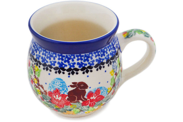 This Chocolate Bunny 12oz Bubble Mug was handmade and hand decorated in Boleslawiec, Poland by skilled artisans according to old traditional methods. This is a Polish pottery Signature Unikat, which means that it has been hand painted with both sponges and brushes and it is signed by the artist who painted it. Unikat pieces are the most intricate works of art. Larger Unikat items take hours of very careful work to finish. This Polish stoneware is microwave, dishwasher, freezer, and oven safe up to 480°F. It does not contain lead or cadmium. It is part of the Chocolate Bunny Collection.