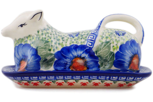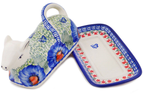 This Brilliant Butterfly Popp 8" Butter Dish was handmade and hand decorated in Boleslawiec, Poland by skilled artisans according to old traditional methods. This is a Polish pottery Signature Unikat, which means that it has been hand painted with both sponges and brushes and it is signed by the artist who painted it. Unikat pieces are the most intricate works of art. Larger Unikat items take hours of very careful work to finish. This Polish stoneware is microwave, dishwasher, freezer, and oven safe up to 480°F. It does not contain lead or cadmium. It is part of the Brilliant Butterfly Popp Collection.