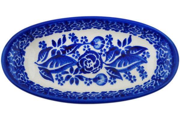This Cobalt Dreams 6" Condiment Dish was handmade and hand decorated in Boleslawiec, Poland by skilled artisans according to old traditional methods. This Polish stoneware is microwave, dishwasher, freezer, and oven safe up to 480°F. It does not contain lead or cadmium. It is part of the Cobalt Dreams Collection.