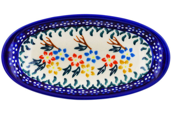 This Spring Flower Ring 6" Condiment Dish was handmade and hand decorated in Boleslawiec, Poland by skilled artisans according to old traditional methods. This Polish stoneware is microwave, dishwasher, freezer, and oven safe up to 480°F. It does not contain lead or cadmium. It is part of the Spring Flower Ring Collection.