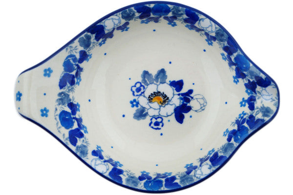 This Blue Spring Blue 7" Condiment Dish was handmade and hand decorated in Boleslawiec, Poland by skilled artisans according to old traditional methods. This Polish stoneware is microwave, dishwasher, freezer, and oven safe up to 480°F. It does not contain lead or cadmium. It is part of the Blue Spring Blue Collection.