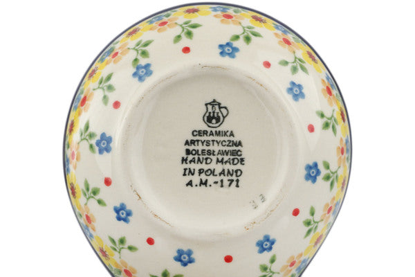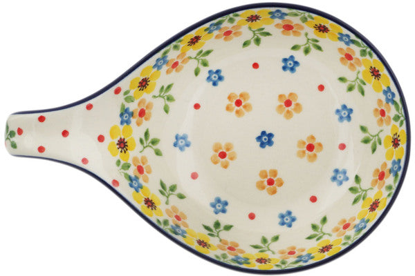 This Country Spring 7" Condiment Dish was handmade and hand decorated in Boleslawiec, Poland by skilled artisans according to old traditional methods. This Polish stoneware is microwave, dishwasher, freezer, and oven safe up to 480°F. It does not contain lead or cadmium. It is part of the Country Spring Collection.