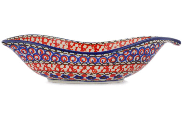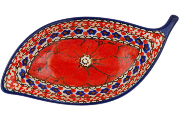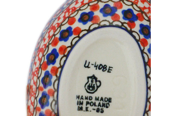 This Crimson Poppies 6" Condiment Dish was handmade and hand decorated in Boleslawiec, Poland by skilled artisans according to old traditional methods. This is a Polish pottery Signature Unikat, which means that it has been hand painted with both sponges and brushes and it is signed by the artist who painted it. Unikat pieces are the most intricate works of art. Larger Unikat items take hours of very careful work to finish. This Polish stoneware is microwave, dishwasher, freezer, and oven safe up to 480°F. It does not contain lead or cadmium. It is part of the Crimson Poppies Collection.