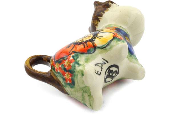 This Bright Beauty 2 oz Cow Shaped Creamer was handmade and hand decorated in Boleslawiec, Poland by skilled artisans according to old traditional methods. This is a Polish pottery Signature Unikat, which means that it has been hand painted with both sponges and brushes and it is signed by the artist who painted it. Unikat pieces are the most intricate works of art. Larger Unikat items take hours of very careful work to finish. This Polish stoneware is microwave, dishwasher, freezer, and oven safe up to 480°F. It does not contain lead or cadmium. It is part of the Bright Beauty Collection.