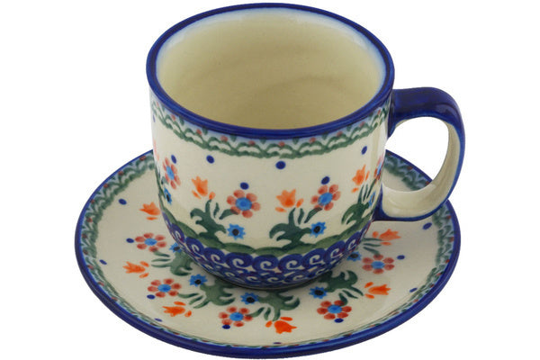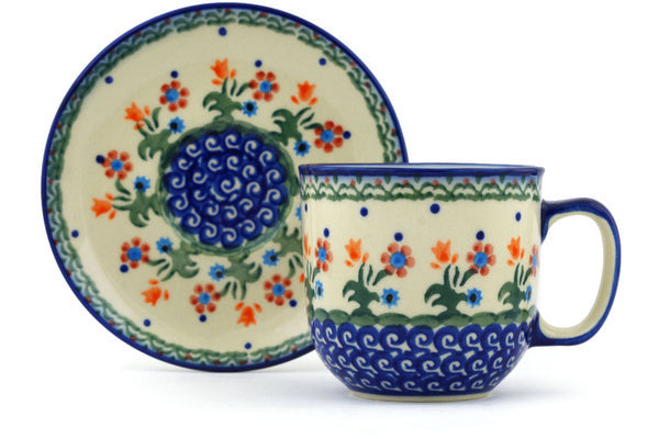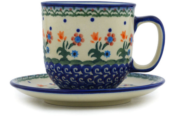 This Spring Flowers Cup with Saucer was handmade and hand decorated in Boleslawiec, Poland by skilled artisans according to old traditional methods. This Polish stoneware is microwave, dishwasher, freezer, and oven safe up to 480°F. It does not contain lead or cadmium. It is part of the Spring Flowers Collection.