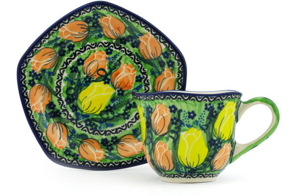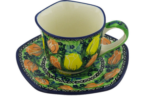 Cup with Saucer 8 oz Easter Rose Theme UNIKAT