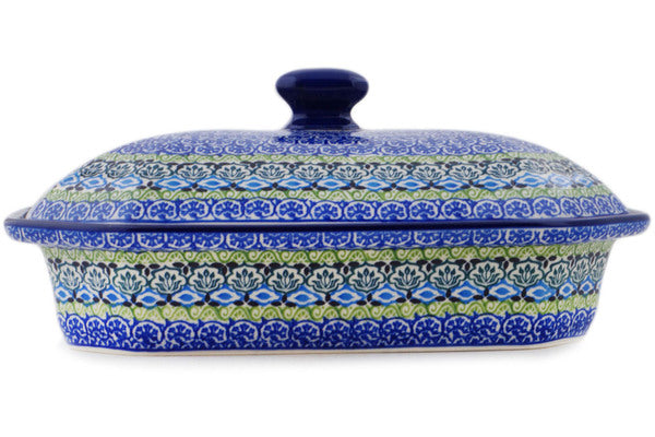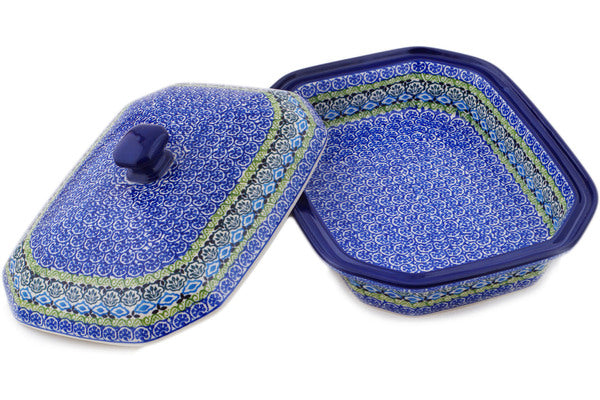 This Artistic Boho 12" Dish with Cover was handmade and hand decorated in Boleslawiec, Poland by skilled artisans according to old traditional methods. This Polish stoneware is microwave, dishwasher, freezer, and oven safe up to 480°F. It does not contain lead or cadmium. It is part of the Artistic Boho Collection.