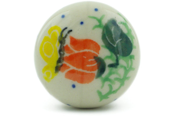 This Butterfly Vine 1" Drawer knob 1-3/8 inch was handmade and hand decorated in Boleslawiec, Poland by skilled artisans according to old traditional methods. This Polish stoneware is microwave, dishwasher, freezer, and oven safe up to 480°F. It does not contain lead or cadmium. It is part of the Butterfly Vine Collection.