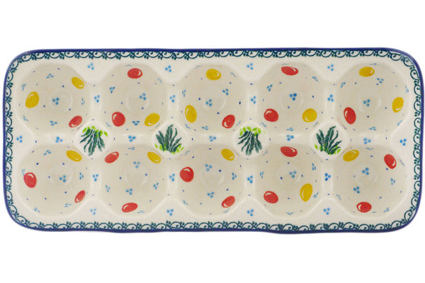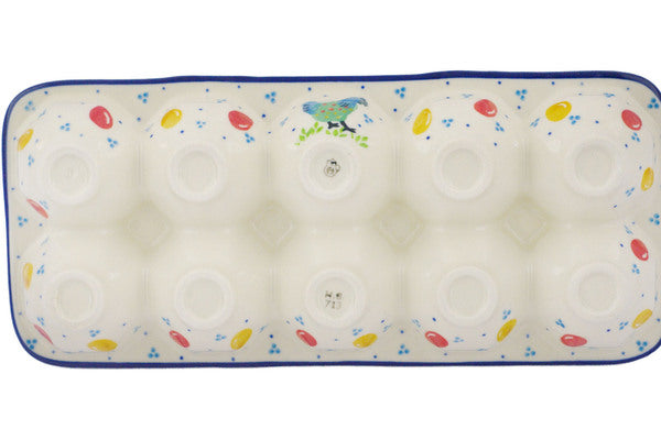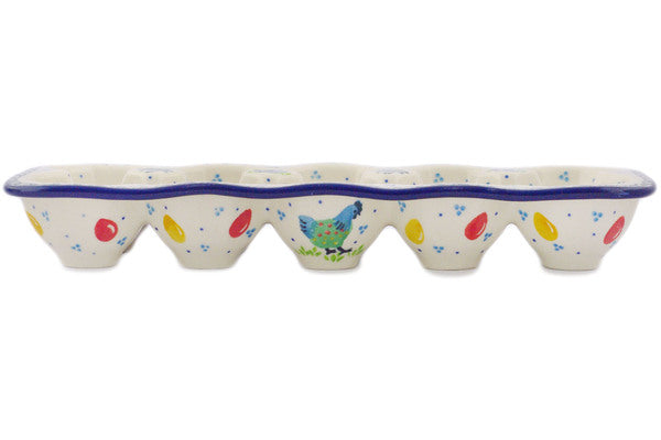 This Egg-celent 11" Egg Crate was handmade and hand decorated in Boleslawiec, Poland by skilled artisans according to old traditional methods. This Polish stoneware is microwave, dishwasher, freezer, and oven safe up to 480°F. It does not contain lead or cadmium. It is part of the Egg-celent Collection.