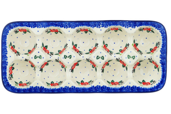 This Pasadena Delight 11" Egg Crate was handmade and hand decorated in Boleslawiec, Poland by skilled artisans according to old traditional methods. This Polish stoneware is microwave, dishwasher, freezer, and oven safe up to 480°F. It does not contain lead or cadmium. It is part of the Pasadena Delight Collection.