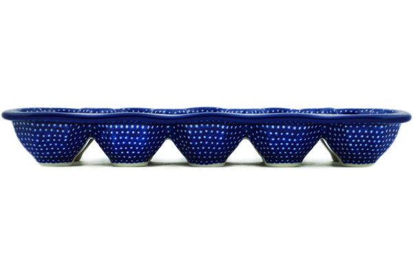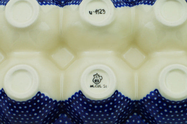 This Starry Night 11" Egg Crate was handmade and hand decorated in Boleslawiec, Poland by skilled artisans according to old traditional methods. This is a Polish pottery Signature Unikat, which means that it has been hand painted with both sponges and brushes and it is signed by the artist who painted it. Unikat pieces are the most intricate works of art. Larger Unikat items take hours of very careful work to finish. This Polish stoneware is microwave, dishwasher, freezer, and oven safe up to 480°F. It does not contain lead or cadmium. It is part of the Starry Night Collection.