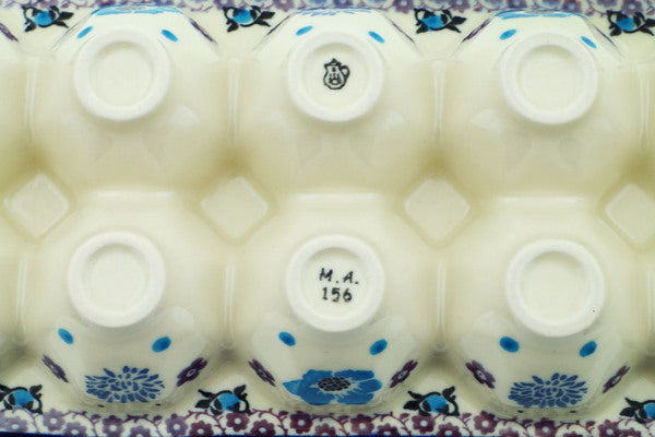 This Blooming Blues 13" Egg Crate was handmade and hand decorated in Boleslawiec, Poland by skilled artisans according to old traditional methods. This Polish stoneware is microwave, dishwasher, freezer, and oven safe up to 480°F. It does not contain lead or cadmium. It is part of the Blooming Blues Collection.