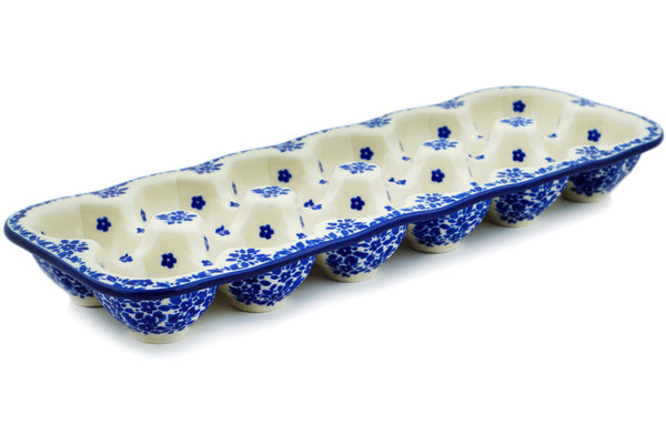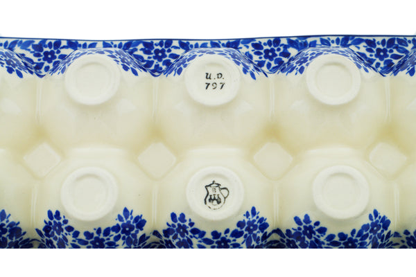 This Choppy Waters 13" Egg Crate was handmade and hand decorated in Boleslawiec, Poland by skilled artisans according to old traditional methods. This Polish stoneware is microwave, dishwasher, freezer, and oven safe up to 480°F. It does not contain lead or cadmium. It is part of the Choppy Waters Collection.