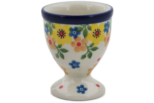This Country Spring 2" Egg Holder was handmade and hand decorated in Boleslawiec, Poland by skilled artisans according to old traditional methods. This Polish stoneware is microwave, dishwasher, freezer, and oven safe up to 480°F. It does not contain lead or cadmium. It is part of the Country Spring Collection.