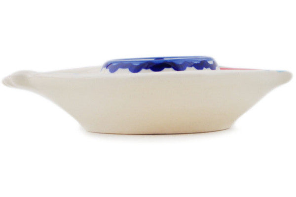 This Orange And Blue Flower 5" Egg Plate was handmade and hand decorated in Boleslawiec, Poland by skilled artisans according to old traditional methods. This Polish stoneware is microwave, dishwasher, freezer, and oven safe up to 480°F. It does not contain lead or cadmium. It is part of the Orange And Blue Flower Collection.
