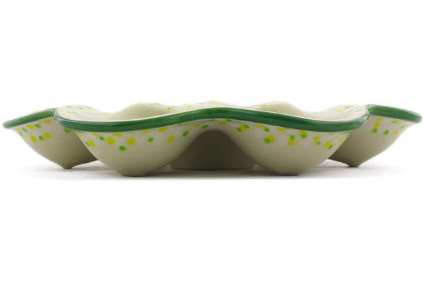This Blossom Sprinkle 8" Egg Plate was handmade and hand decorated in Boleslawiec, Poland by skilled artisans according to old traditional methods. This is a Polish pottery Signature Unikat, which means that it has been hand painted with both sponges and brushes and it is signed by the artist who painted it. Unikat pieces are the most intricate works of art. Larger Unikat items take hours of very careful work to finish. This Polish stoneware is microwave, dishwasher, freezer, and oven safe up to 480°F. It does not contain lead or cadmium. It is part of the Blossom Sprinkle Collection.