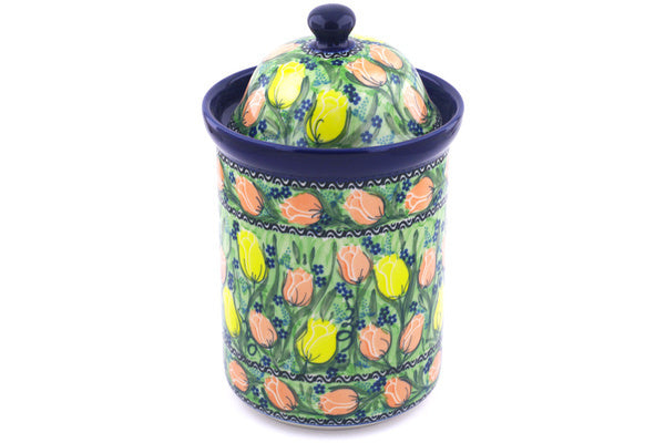 This Easter Rose 11" Large Canister 11" was handmade and hand decorated in Boleslawiec, Poland by skilled artisans according to old traditional methods. This is a Polish pottery Signature Unikat, which means that it has been hand painted with both sponges and brushes and it is signed by the artist who painted it. Unikat pieces are the most intricate works of art. Larger Unikat items take hours of very careful work to finish. This Polish stoneware is microwave, dishwasher, freezer, and oven safe up to 480°F. It does not contain lead or cadmium. It is part of the Easter Rose Collection.
