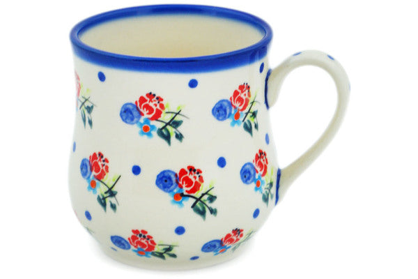 This Dancing Flowers 13 oz Mug was handmade and hand decorated in Boleslawiec, Poland by skilled artisans according to old traditional methods. This is a Polish pottery Signature Unikat, which means that it has been hand painted with both sponges and brushes and it is signed by the artist who painted it. Unikat pieces are the most intricate works of art. Larger Unikat items take hours of very careful work to finish. This Polish stoneware is microwave, dishwasher, freezer, and oven safe up to 480°F. It does not contain lead or cadmium. It is part of the Dancing Flowers Collection.