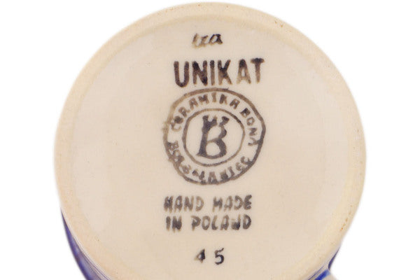 This Brilliant Butterfly Popp 8 oz Mug was handmade and hand decorated in Boleslawiec, Poland by skilled artisans according to old traditional methods. This is a Polish pottery Signature Unikat, which means that it has been hand painted with both sponges and brushes and it is signed by the artist who painted it. Unikat pieces are the most intricate works of art. Larger Unikat items take hours of very careful work to finish. This Polish stoneware is microwave, dishwasher, freezer, and oven safe up to 480°F. It does not contain lead or cadmium. It is part of the Brilliant Butterfly Popp Collection.