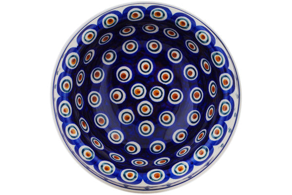 This Peacock 6" Pet Bowl was handmade and hand decorated in Boleslawiec, Poland by skilled artisans according to old traditional methods. This Polish stoneware is microwave, dishwasher, freezer, and oven safe up to 480°F. It does not contain lead or cadmium. It is part of the Peacock Collection.