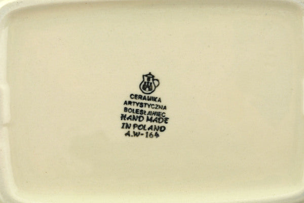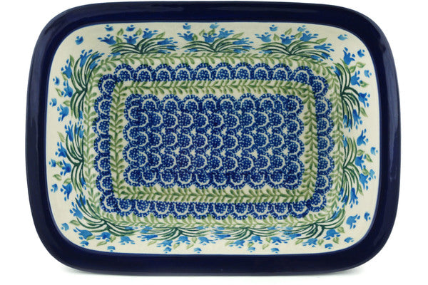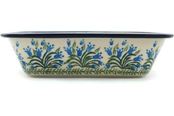 This Feathery Bluebells 10" Rectangular Baker was handmade and hand decorated in Boleslawiec, Poland by skilled artisans according to old traditional methods. This Polish stoneware is microwave, dishwasher, freezer, and oven safe up to 480°F. It does not contain lead or cadmium. It is part of the Feathery Bluebells Collection.