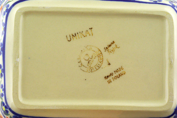 This Brilliant Butterfly Popp 8" Rectangular Baker was handmade and hand decorated in Boleslawiec, Poland by skilled artisans according to old traditional methods. This is a Polish pottery Signature Unikat, which means that it has been hand painted with both sponges and brushes and it is signed by the artist who painted it. Unikat pieces are the most intricate works of art. Larger Unikat items take hours of very careful work to finish. This Polish stoneware is microwave, dishwasher, freezer, and oven safe up to 480°F. It does not contain lead or cadmium. It is part of the Brilliant Butterfly Popp Collection.