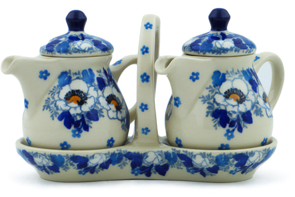 This Blue Spring 6" Seasoning Set was handmade and hand decorated in Boleslawiec, Poland by skilled artisans according to old traditional methods. This Polish stoneware is microwave, dishwasher, freezer, and oven safe up to 480°F. It does not contain lead or cadmium. It is part of the Blue Spring Collection.