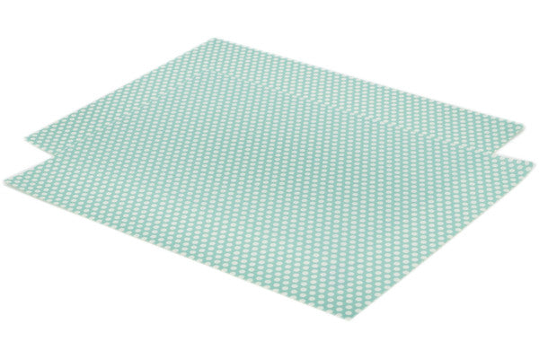 This Green Peacock's Eye 16" Set of 2 Placemats was handmade and hand decorated in Boleslawiec, Poland by skilled artisans according to old traditional methods. This is a Polish pottery Signature Unikat, which means that it has been hand painted with both sponges and brushes and it is signed by the artist who painted it. Unikat pieces are the most intricate works of art. Larger Unikat items take hours of very careful work to finish. This Polish stoneware is microwave, dishwasher, freezer, and oven safe up to 480°F. It does not contain lead or cadmium. It is part of the Green Peacock's Eye Collection.