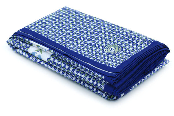 This Sweet Dreams 102" Stain Resistant Tablecloth 61" x 102" (155 x 260 cm) was handmade and hand decorated in Boleslawiec, Poland by skilled artisans according to old traditional methods. This Polish stoneware is microwave, dishwasher, freezer, and oven safe up to 480°F. It does not contain lead or cadmium. It is part of the Sweet Dreams Collection.