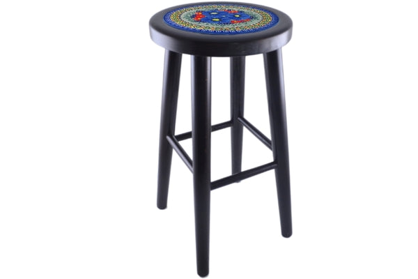 This Aztec Flowers 24" Stool was handmade and hand decorated in Boleslawiec, Poland by skilled artisans according to old traditional methods. This is a Polish pottery Signature Unikat, which means that it has been hand painted with both sponges and brushes and it is signed by the artist who painted it. Unikat pieces are the most intricate works of art. Larger Unikat items take hours of very careful work to finish. This Polish stoneware is microwave, dishwasher, freezer, and oven safe up to 480°F. It does not contain lead or cadmium. It is part of the Aztec Flowers Collection.