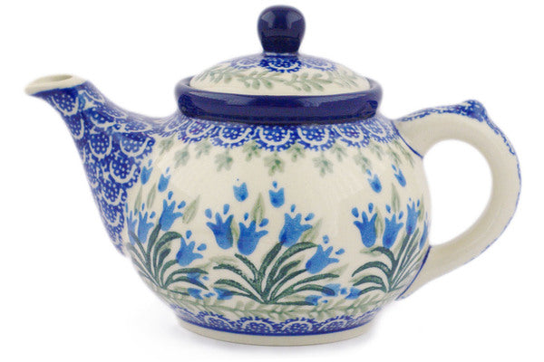 This Feathery Bluebells 13 oz Tea or Coffee Pot was handmade and hand decorated in Boleslawiec, Poland by skilled artisans according to old traditional methods. This Polish stoneware is microwave, dishwasher, freezer, and oven safe up to 480°F. It does not contain lead or cadmium. It is part of the Feathery Bluebells Collection.