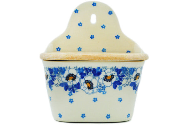 This Blue Spring 6" Wall Jar was handmade and hand decorated in Boleslawiec, Poland by skilled artisans according to old traditional methods. This Polish stoneware is microwave, dishwasher, freezer, and oven safe up to 480°F. It does not contain lead or cadmium. It is part of the Blue Spring Collection.