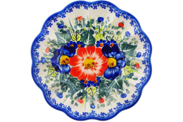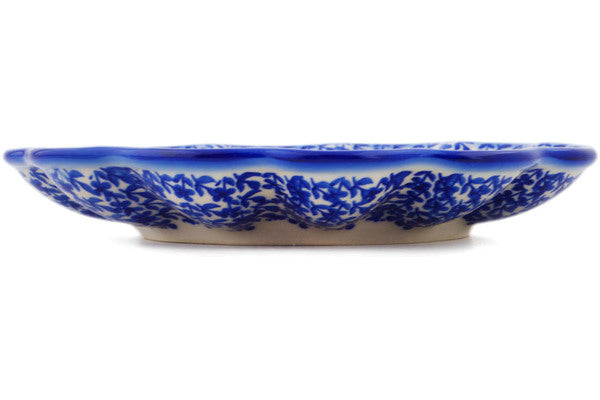 This Poppy Trio 8" Egg Plate was handmade and hand decorated in Boleslawiec, Poland by skilled artisans according to old traditional methods. This is a Polish pottery Signature Unikat, which means that it has been hand painted with both sponges and brushes and it is signed by the artist who painted it. Unikat pieces are the most intricate works of art. Larger Unikat items take hours of very careful work to finish. This Polish stoneware is microwave, dishwasher, freezer, and oven safe up to 480°F. It does not contain lead or cadmium. It is part of the Poppy Trio Collection.