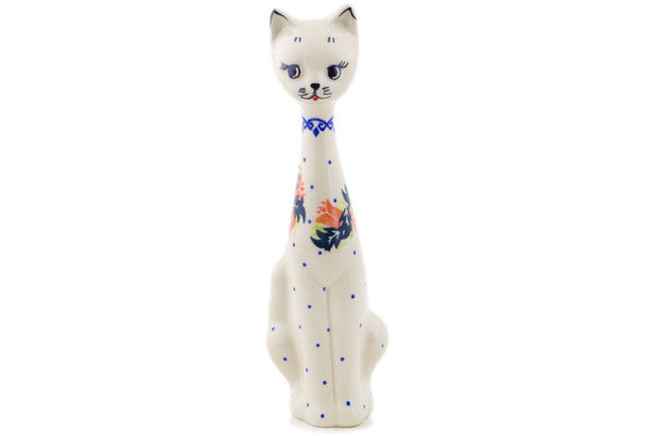 This California Poppies 10" Cat Figurine was handmade and hand decorated in Boleslawiec, Poland by skilled artisans according to old traditional methods. This Polish stoneware is microwave, dishwasher, freezer, and oven safe up to 480°F. It does not contain lead or cadmium. It is part of the California Poppies Collection.