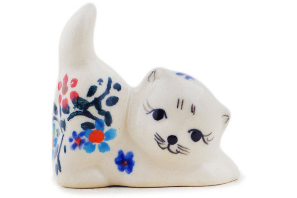This Neon Wreath 2" Cat Figurine was handmade and hand decorated in Boleslawiec, Poland by skilled artisans according to old traditional methods. This Polish stoneware is microwave, dishwasher, freezer, and oven safe up to 480°F. It does not contain lead or cadmium. It is part of the Neon Wreath Collection.