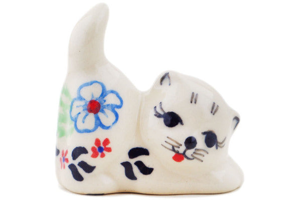 This Sweet Day 2" Cat Figurine was handmade and hand decorated in Boleslawiec, Poland by skilled artisans according to old traditional methods. This Polish stoneware is microwave, dishwasher, freezer, and oven safe up to 480°F. It does not contain lead or cadmium. It is part of the Sweet Day Collection.