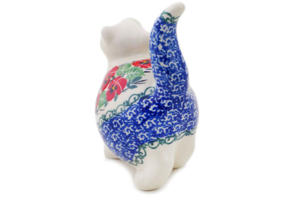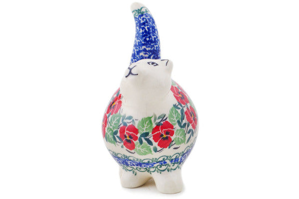This Red Pansy 5" Cat Figurine was handmade and hand decorated in Boleslawiec, Poland by skilled artisans according to old traditional methods. This Polish stoneware is microwave, dishwasher, freezer, and oven safe up to 480°F. It does not contain lead or cadmium. It is part of the Red Pansy Collection.