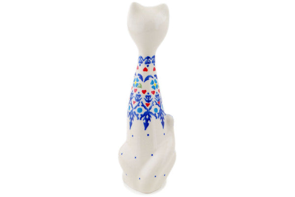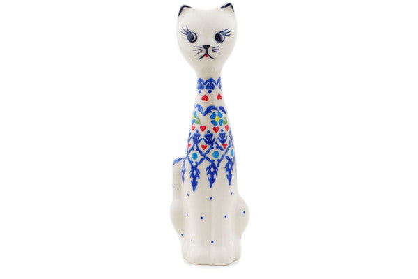 This Graphic Armor 8" Cat Figurine was handmade and hand decorated in Boleslawiec, Poland by skilled artisans according to old traditional methods. This Polish stoneware is microwave, dishwasher, freezer, and oven safe up to 480°F. It does not contain lead or cadmium. It is part of the Graphic Armor Collection.