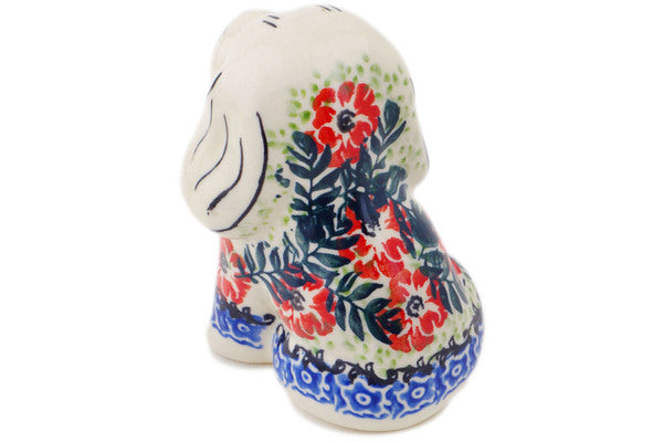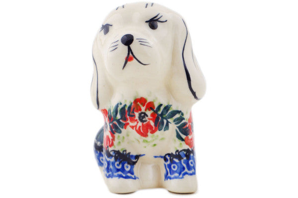 This Front Porch Blooms 4" Dog Figurine was handmade and hand decorated in Boleslawiec, Poland by skilled artisans according to old traditional methods. This Polish stoneware is microwave, dishwasher, freezer, and oven safe up to 480°F. It does not contain lead or cadmium. It is part of the Front Porch Blooms Collection.