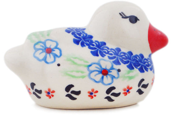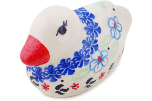 This Sweet Day 4" Duck Figurine was handmade and hand decorated in Boleslawiec, Poland by skilled artisans according to old traditional methods. This Polish stoneware is microwave, dishwasher, freezer, and oven safe up to 480°F. It does not contain lead or cadmium. It is part of the Sweet Day Collection.
