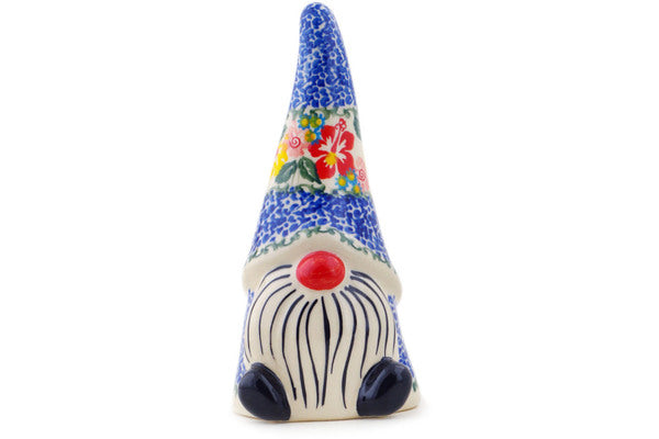This Hibiscus Haven 7" Gnome Figurine was handmade and hand decorated in Boleslawiec, Poland by skilled artisans according to old traditional methods. This Polish stoneware is microwave, dishwasher, freezer, and oven safe up to 480°F. It does not contain lead or cadmium. It is part of the Hibiscus Haven Collection.