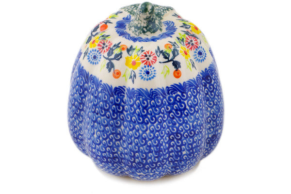 This Pastel Spring Wreath 6" Pumpkin Figurine was handmade and hand decorated in Boleslawiec, Poland by skilled artisans according to old traditional methods. This Polish stoneware is microwave, dishwasher, freezer, and oven safe up to 480°F. It does not contain lead or cadmium. It is part of the Pastel Spring Wreath Collection.