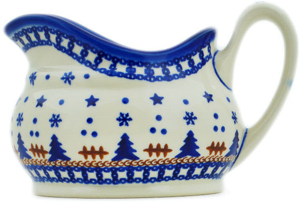 This Winter Snow 19 oz Gravy Boat was handmade and hand decorated in Boleslawiec, Poland by skilled artisans according to old traditional methods. This Polish stoneware is microwave, dishwasher, freezer, and oven safe up to 480°F. It does not contain lead or cadmium. It is part of the Winter Snow Collection.